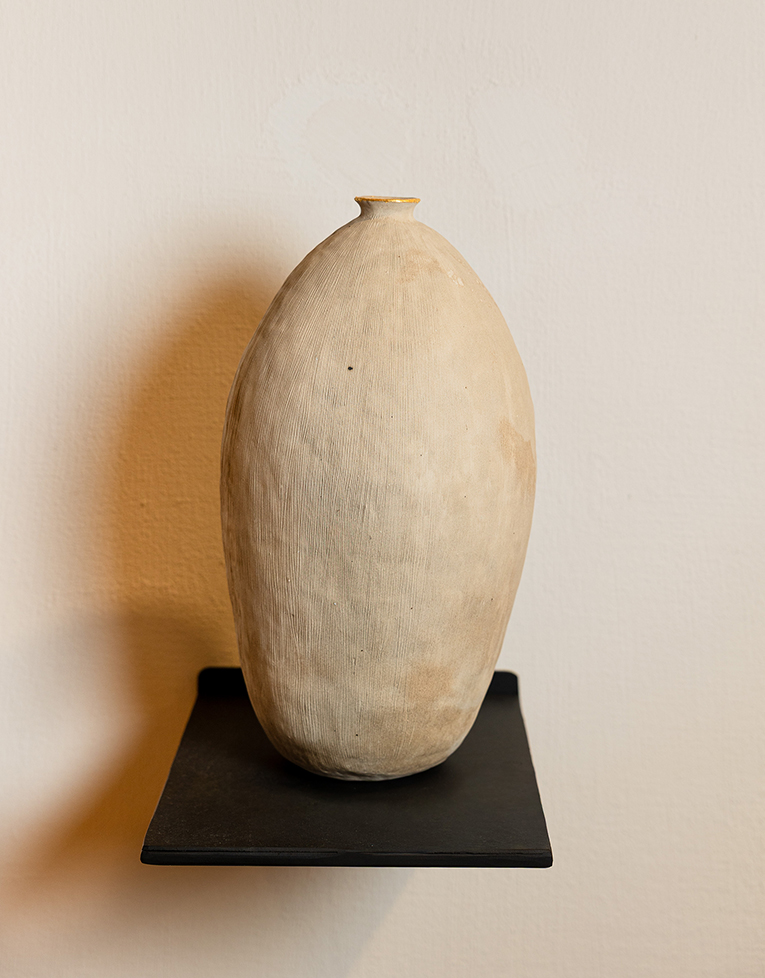 Esta fuente cerámica artesanal tiene un acabado interior en colores tierra aplicados a brocha, lo que hace que esta pieza casi parezca un lienzo sobre el que emplatar las comidas. El exterior está sin esmaltar, lo que le da un tacto más áspero y natural. En tonos mate claros y cálidos, es una pieza de cerámica de diseño que combina con tonos muy distintos: blancos, marrones, verdes, azules… Está inspirado en los secos campos de Málaga en verano, lleno de matices en tonos tierra.